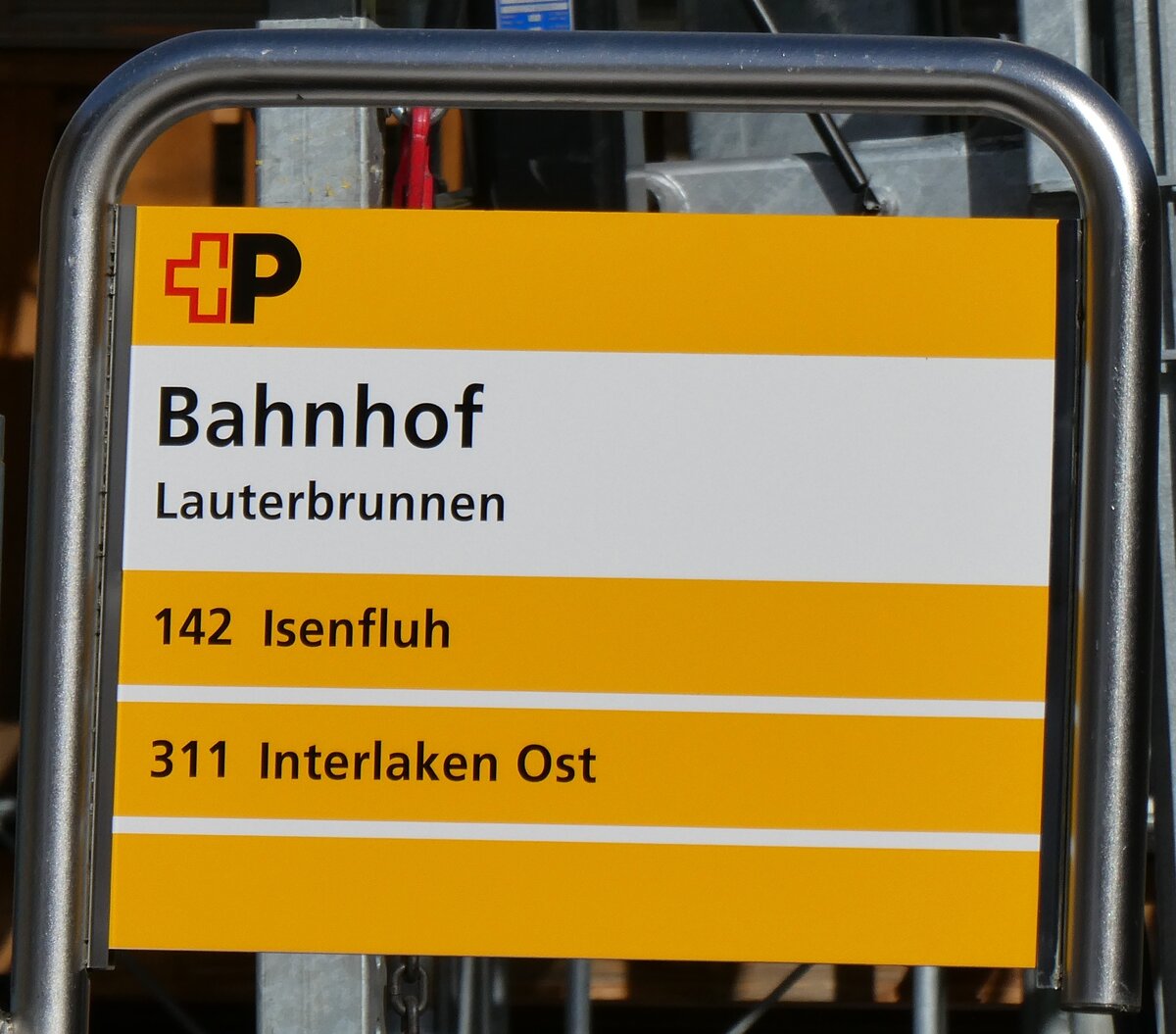 (285'246) - PostAuto-Haltestellenschild - Moutier, gare - am 6. März 2026