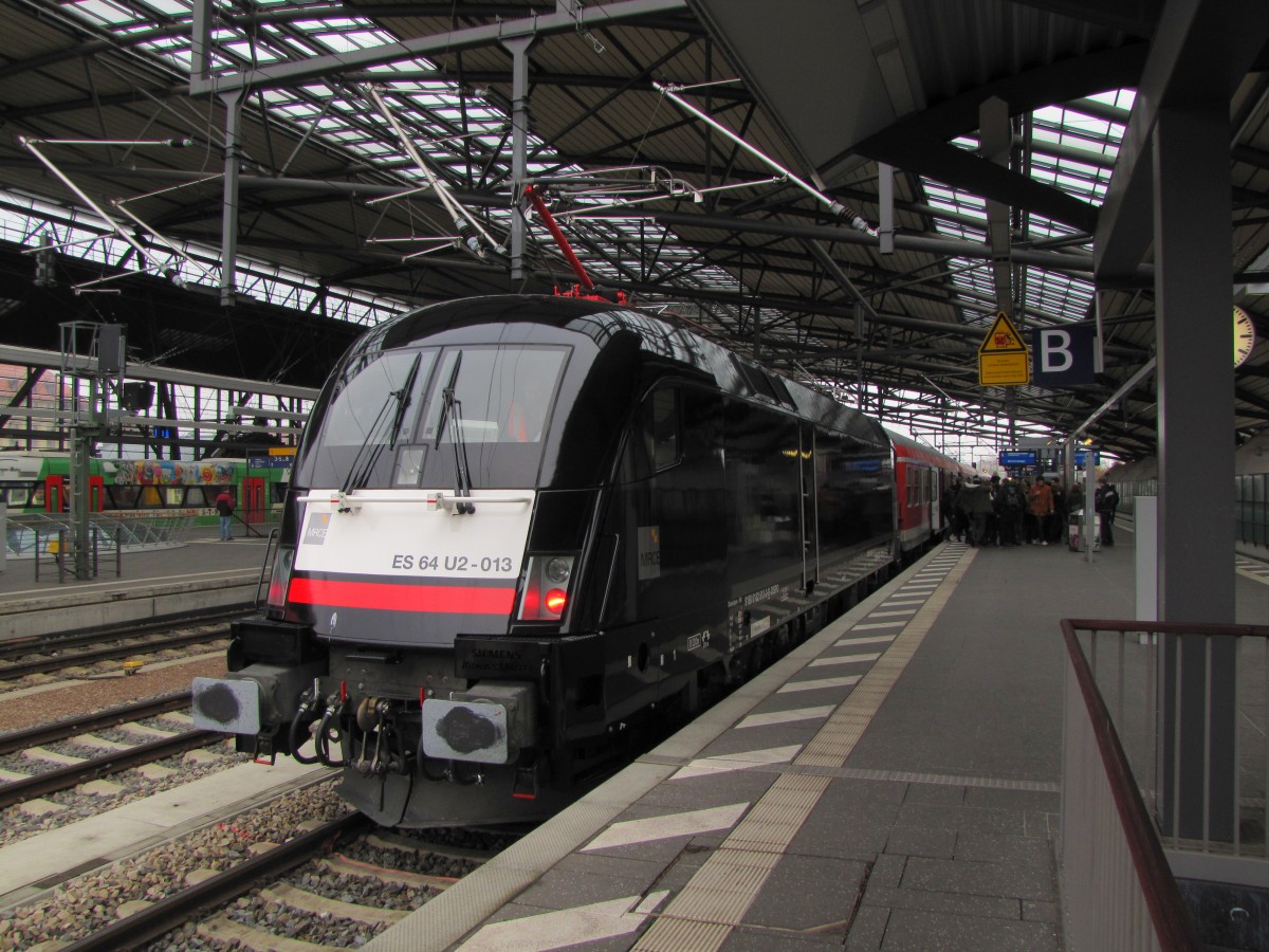 DB ES 64 U2-005 mit der RB 16314 von Halle (S) Hbf nach Eisenach, am 06.12.2013 in Naumburg Hbf.