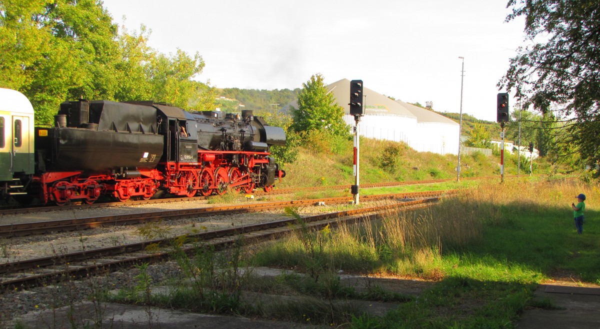 EMBB 52 8154-8 mit dem Winzerfestsonderzug aus Leipzig, am 12.09.2015 in der Abstellung in Karsdorf.